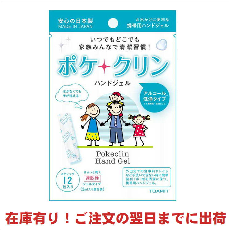 ハンドジェル 携帯用 アルコール洗浄 ポケクリン【2ml × 12包】洗浄 衛生用品 手洗い エタノール 車内 飲食店 手 指 清潔 アルコール洗浄ジェル 外出 旅行 出張 トラベル 食事 送料無料 日本製