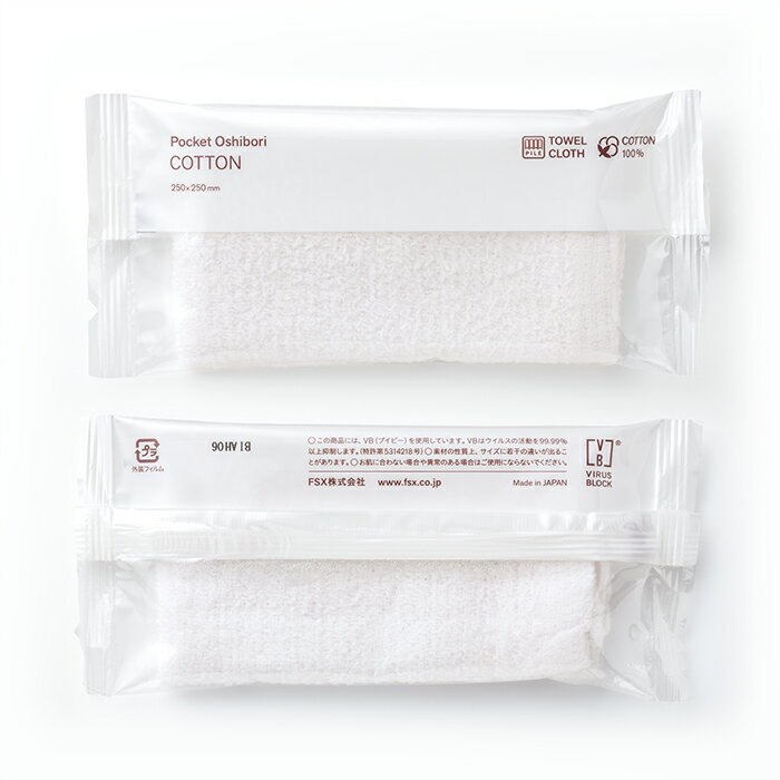 商品名 ポケットおしぼり COTTON メーカー FSX(株) 規 格 おしぼりサイズ:250×250mm個包装サイズ:70×160mm 入 数 500本(50本×10パック) ウォーマー(温め)対応 可 原 紙 綿素材 製 造 日本 配合成分 水、フェノキシエタノールベンザルコニウムクロリドVB 特 長 ●使い切りタイプの布製おしぼり。
